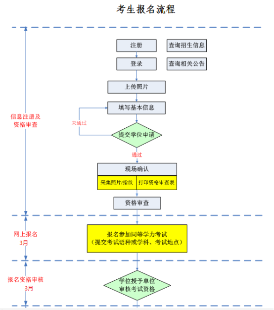 3.申请人应在国家指定的时间内自行登录信息平台参加外语和学科综合水平的报考、打印准考证、成绩查询、打印统考成绩等相关工作。