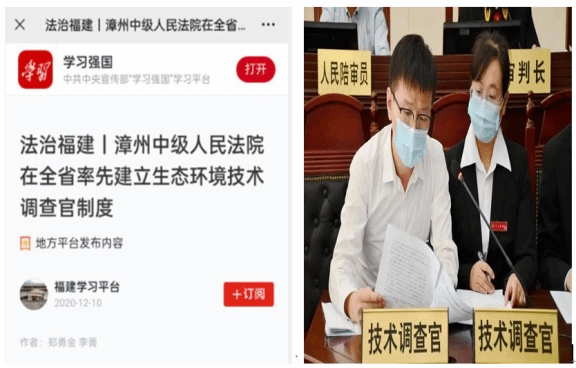 党支部积极联合漳州市中级人民法院推进生态技术调查官培训,开展生态文明教育。支部党员黄旭光参与 “全国首例生态技术调查官参与的污染环境案”案件,帮助被告、检察官、法官和陪审人员厘清生态环境污染案件中的技术性难点,对司法鉴定意见的合理性及受污染环境修复的可行性和修复方案等进行分析论证,提出完善建议。将支部党员研发的简易可行的修复方式应用于生态司法,指导被告在缓刑期内按修复方案执行生态修复。这既对被告人进行了法律惩罚,也做了较好的环境保护宣导。受到学习强国等媒体的关注和报道,获得了较大的社会反响。