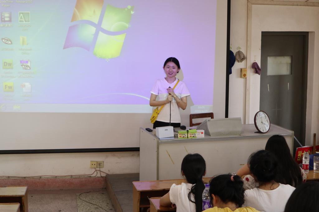 经验分享环节,四位成功考取研究生的同学一一登台。考上湖南师范大学的刘思佳同学从考研复习方法、复习时间分配、复习心态、复试准备等方面为学弟学妹们讲述经验,如每日坚持做英语练习、听听英语的网络课程辅助学习、背书时要学会抓关键词减轻记忆负担等。之后通过自己曾经考研时的多重压力,告诉学弟学妹要懂得坚持,考研路上若能找到一位研友,彼此交流勉励,对考研过程大有裨益。