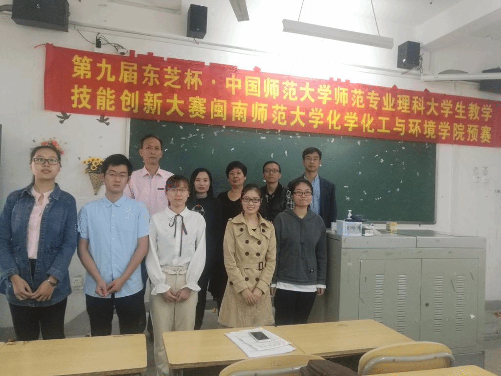 第九届“东芝杯”中国师范大学师范专业理科大学生教学技能创新大赛yl23455永利集团预赛于2018年11月4日上午9:00在励志103顺利举行。该预赛在学生志愿报名基础上采用现场教学和问题提问环节组成,赛事邀请郭鸿旭教授、林珩教授、周凌云副教授、杨妙霞副教授及戴树东高级实验师担任评委。经过紧张激烈角逐,2015级化学专业贺水花同学荣获一等奖,2015级化学刘强强及周密同学荣获二等奖,2016级化学赖文娟及黄舒颖同学荣获三等奖。
