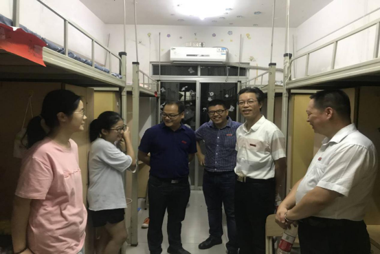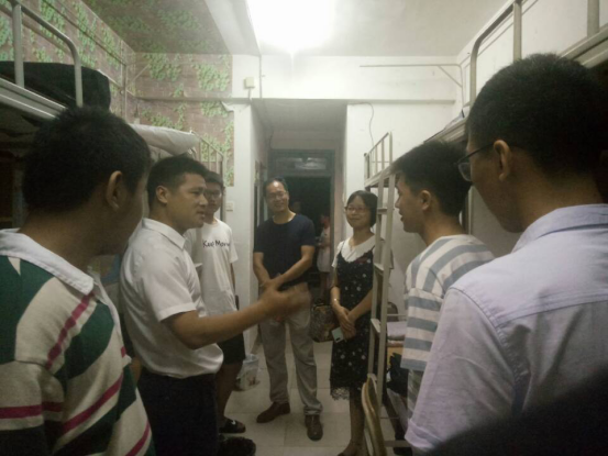 为深入了解新生入学情况和需求,帮助新生尽快适应大学生活,2019年9月7日晚7时整,我院党委书记李建辉、院长汪庆祥、党委副书记陈丽新、副院长陈建华,副院长张茂升,副院长张骁,全体政工干部和2019级新生班主任分别来到达理学生公寓2号楼,3号楼和8号楼的新生宿舍进行走访,与新生们亲切交谈。