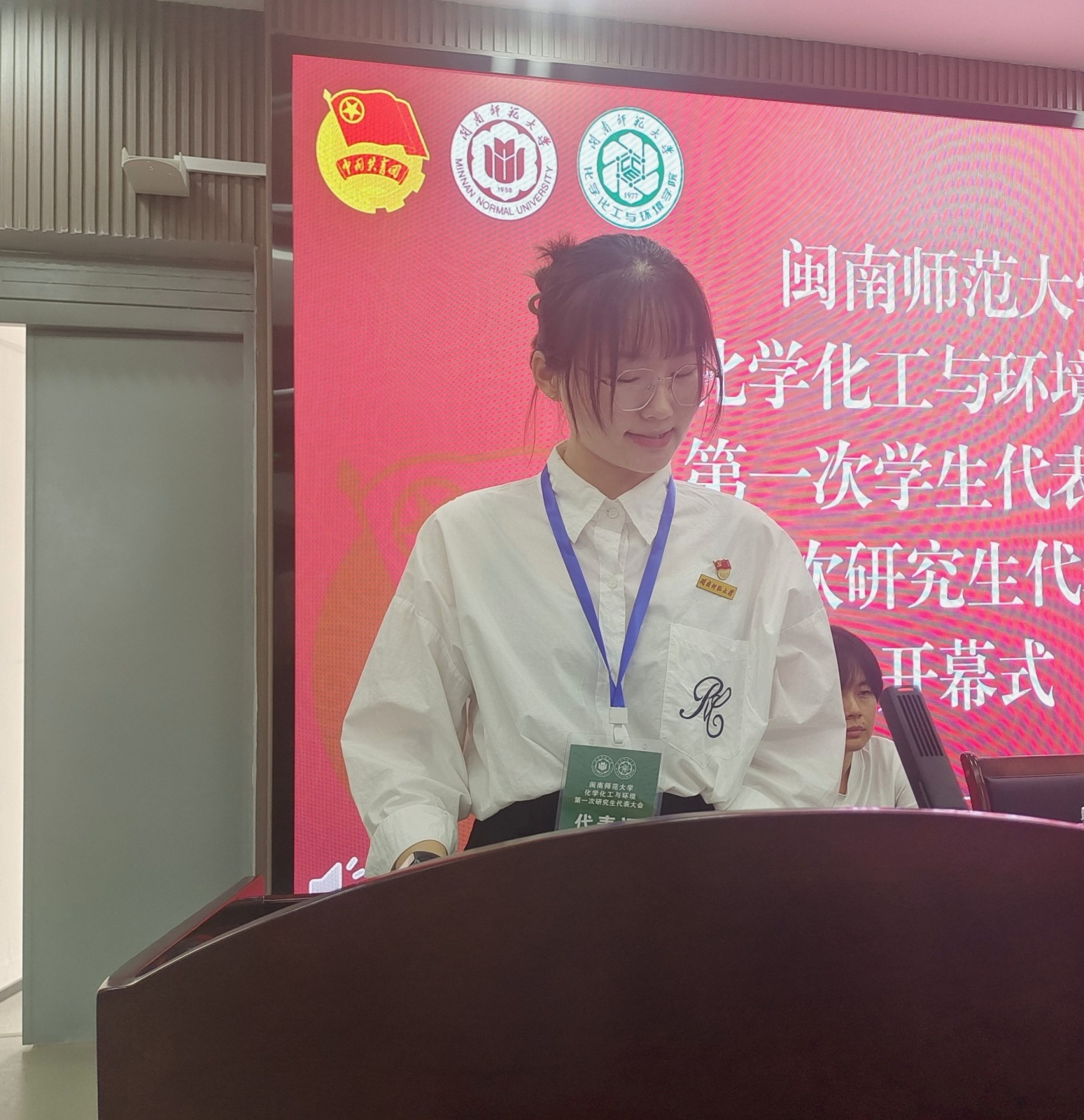 下午15:00,大会在庄严的国歌声中拉开序幕。会上,院2021-2022学年研究生会主席团成员薛艳雪致开幕词。