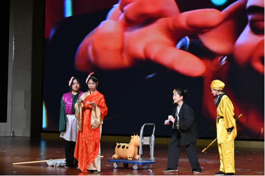 第三篇章“青春•飞扬”则更是精彩纷呈。西行十万八千里,师徒四人只为求得真经。苦等寒窗二十载,妖孽白骨只为容颜永驻。当妖精沉迷直播,当师徒彼此误会,经典的故事因为你我而不断改写。艺术团话剧小品队的小品《三遇白骨精》诙谐幽默,引人发笑。