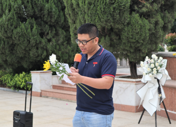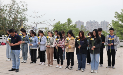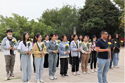 4月8日下午,在我院团委副书记杨文亮老师的带领下,参与活动的学生党员、学生干部们怀着无比崇敬的心情向烈士纪念碑敬献鲜花,并默哀悼念,鞠躬行礼,寄托哀思。