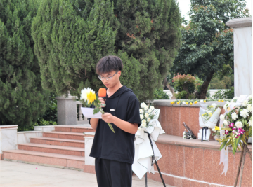 接下来由学生代表李国栋同学发言。“红花无情笑东风,青山有幸埋忠骨”,革命先烈们永远是我们心中的一块丰碑。“这是一种身份,也是一种荣誉”,李国栋同学声情并茂的诉说感想。是的,我们是闽师人,更是中国人!在未来,我们定当不负众望,铭记历史,创造辉煌。同时,在缅怀先烈的过程中,我们也要有忧患意识,现在的中国虽高速发展,但也面临周围国家的虎视眈眈,如今良好的学习环境造就更多人才,我们必定不负韶华,激流勇进,以青年之声发出时代强音,做新时代的坚定信仰者、忠实实践者。