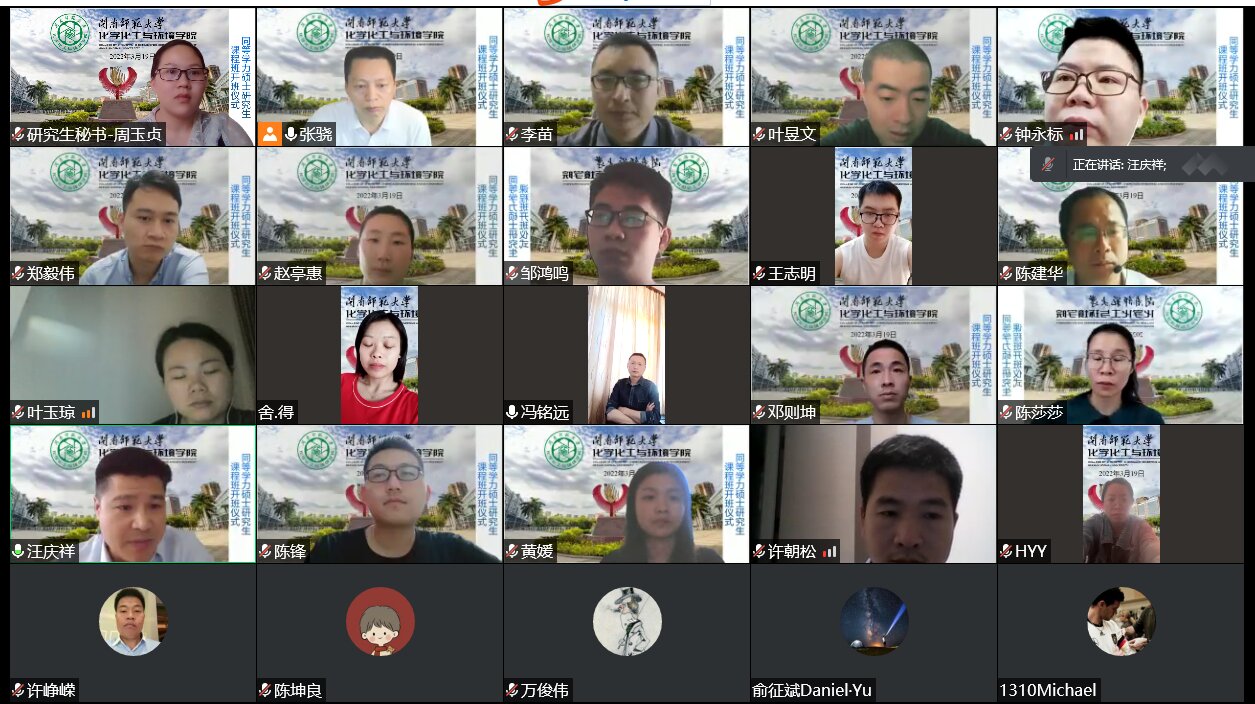 3月19日下午,我院2022年同等学力硕士研究生开班仪式在云端举行,会议由学院副院长张骁主持,学院党委书记李苗、副书记、院长汪庆祥、副院长陈建华、研究生教学秘书周玉贞及全体同等学力硕士研究生参加了此次开班仪式。