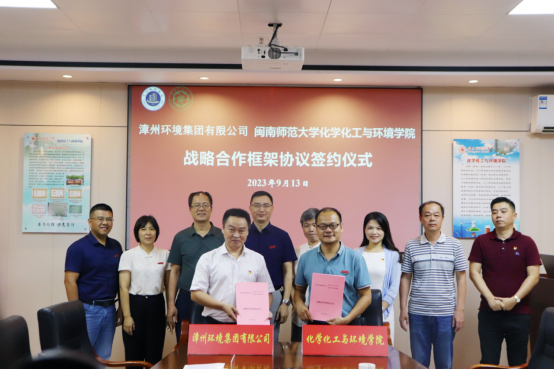 9月13日上午,我院与漳州环境集团有限公司战略合作框架协议签约仪式在科技信息楼1103会议室举行。院党委书记李苗,党委副书记、副院长张茂升,副院长陈建华,漳州环境集团有限公司党委书记、董事长郑艺平,常务副总经理陈永正,副书记、副总经理杨娜,副总经理林毅民,副总经理颜荣君出席签约仪式。签约仪式由张茂升主持。
