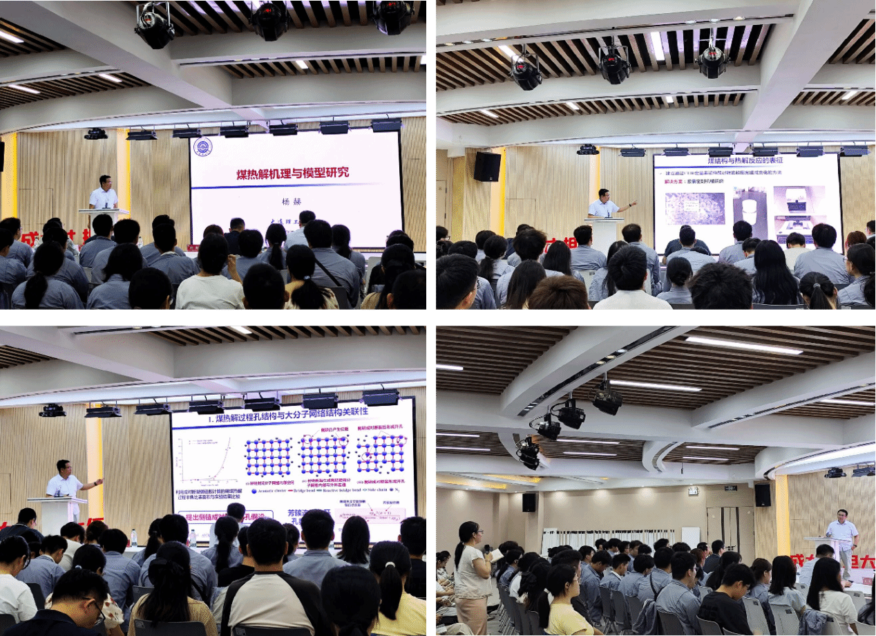 杨赫教授在"煤热解机理与模型研究"讲座中,深入探讨了煤热解过程中孔隙结构演变与大分子结晶行为的关联机制。他首先剖析了煤热解领域的三大挑战:传统实验手段难以原位捕捉自由基反应的动态过程、现有模型无法耦合复杂孔道内的传热-传质-反应效应,以及工业放大过程中焦油产率与品质的不可控衰减。针对这些问题,研究团队通过多尺度表征与建模方法,揭示了煤热解过程中孔隙网络对热解产物分布的调控作用,以及大分子间结晶行为对热解路径的影响规律。这些发现为建立更精确的煤热解动力学模型提供了理论基础,对优化工业热解工艺、提高焦油产率和品质具有重要指导意义。该研究不仅深化了对煤热解微观机理的认识,也为煤炭资源的高效清洁利用提供了新的科学依据。