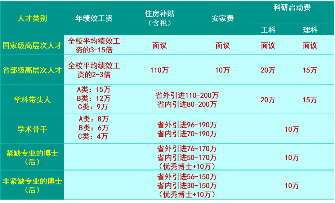 除享受基本工资及福利待遇外,学校还提供绩效工资、住房补贴、安家费、科研启动费。
