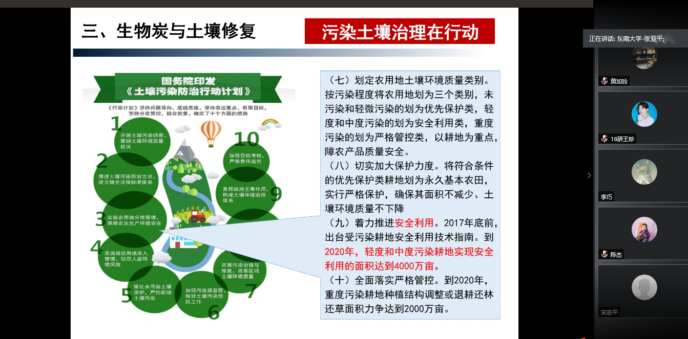 11月12日下午,东南大学能源与环境学院博士生导师,江苏省能源研究会副秘书长,江苏省地质学会委员农业地质专委会委员及南京市地质学会理事张亚平教授应邀为我院师生作题为“生物炭:土壤修复与循环农业”的线上学术报告,此次报告由院长汪庆祥教授主持,我院师生积极参与。