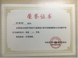 2017年,成为福建省“十三五”小学科学教学学科带头人培养实施项目唯一承担单位;