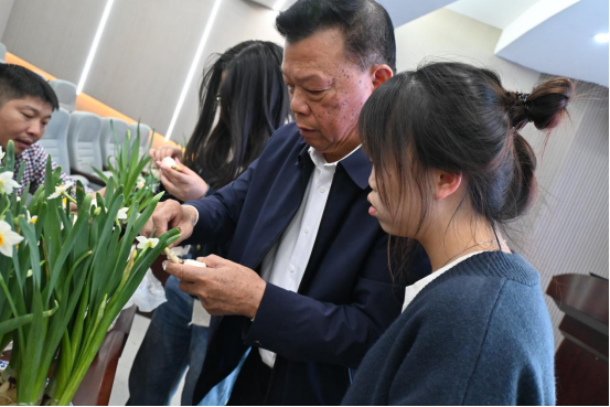 漳州作为水仙花的发源地,不仅有着悠久的发展史,还有着独特的雕刻技艺。为了丰富大家的劳动教育课程,我们邀请到了福建省花卉协会水仙花分会会长、龙海市宜春水仙花专业合作社董事长、中国水仙花非物质文化遗产传承人张文江会长,以及另一位传承人黄丽金女士,来为我们讲解漳州水仙花发展史与水仙花雕刻技术。22科教1班班主任蔡培原老师以及22科教1班全体学生参加本次活动,活动由团支书林雅婷主持。
