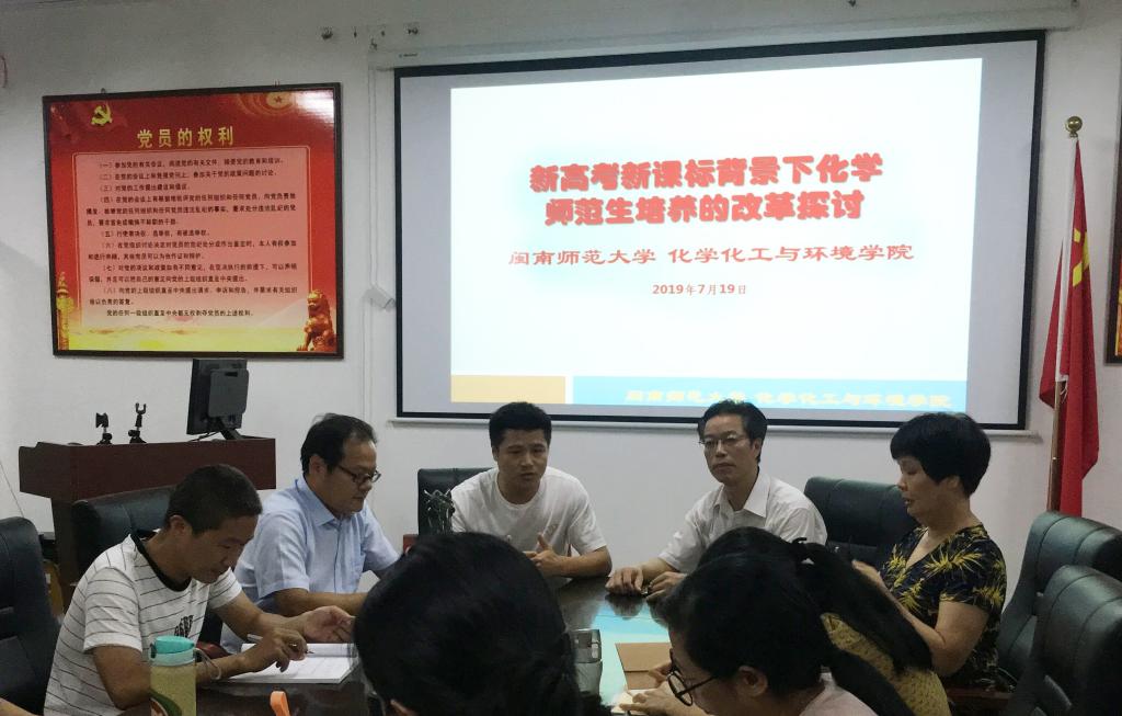 为更加深入贯彻全国教育大会及新时代全国高等学校本科教育工作会议精神,对接高考政策的变革和新课标下的中学化学教学工作新变化,提升师范生人才培养质量,进一步深化教育教学改革,7月19日,我院组织召开题为“新高考新课标背景下化学师范生培养的改革研讨”的座谈会,会议邀请20余名来自各级各类中学的化学教师参加,学院党委书记李建辉、院长汪庆祥、副院长张茂升、化学系主任张燕辉、化学(师范)专业负责人黄明强和相关教师出席座谈会。会议由张茂升副院长主持。